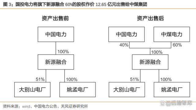 ? 國(guó)家電投:2022M12 子公司中國(guó)電力將旗下新源融合(大別山電廠 51%股權(quán)+姚孟電廠 100%股權(quán))60%的股權(quán)作價(jià) 12.65 億元出售給中煤集團(tuán)子公司中煤電力。
