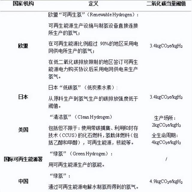 2020年12月29日,國內行業(yè)組織提出《低碳氫、清潔氫與可再生能源氫的標準與評價》,當中指出在單位氫氣碳排放量方面,低碳氫的閾值為14.51千克二氧化碳當量/千克氫,清潔氫和可再生氫的閾值為4.9千克二氧化碳當量/千克氫,同時可再生氫要求其制氫能源為可再生能源。