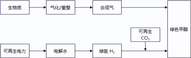 關(guān)于綠色甲醇的定義,目前全球沒有統(tǒng)一明確的說法。國際可再生能源署指出,綠色甲醇需要原料來源全部符合可再生能源標準。目前綠色甲醇主要有兩種生產(chǎn)途徑:一種是生物質(zhì)甲醇,利用生物基原料生產(chǎn);另一是綠電制甲醇。