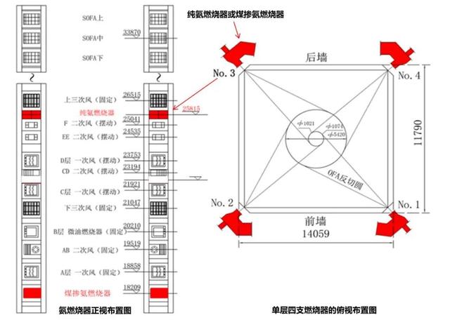 中國(guó)在氨能源化利用方面起步較晚,但是研發(fā)進(jìn)展迅速,當(dāng)前已完成了40兆瓦中試平臺(tái)摻氨35%(國(guó)能煙臺(tái)龍?jiān)?和300兆瓦發(fā)電鍋爐摻氨10%~35%的示范研究(皖能銅陵電廠)。國(guó)內(nèi)外科研機(jī)構(gòu)的試驗(yàn)結(jié)果均表明,燃煤鍋爐混氨燃燒可使得煤粉和氨良好燃盡,燃燒后氮氧化物排放不隨混氨比例增加而等比例升高,且可通過(guò)分級(jí)燃燒等方式顯著降低氮氧化物排放。