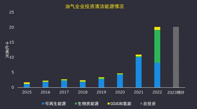 同時(shí),過去七年中,油氣企業(yè)在各類清潔能源業(yè)務(wù)中的年度投資金額增長了約六倍,預(yù)計(jì)2023年已到達(dá)202億美元的水平。