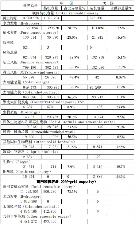 本報告的數(shù)據(jù)來自IRENA 2022年報告,由于中國和美國是世界上最大的經濟體,跟世界各國一樣都在追求“Net zero by 2050”。 本文匯總兩大經濟體在再生能源方面的進展,單位使用的是裝機容量,以MW表示。