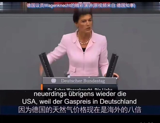 近日網(wǎng)上流行的德國(guó)女議員抨擊德國(guó)及歐盟能源政策的視頻截圖