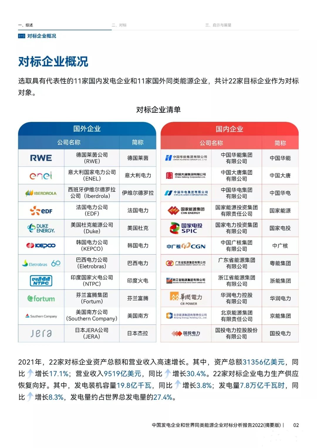 日前中國電力企業(yè)聯(lián)合會2022 年年會在海口舉行,中電聯(lián)電力發(fā)展研究院院長張?zhí)旃庠跁险桨l(fā)布《中國發(fā)電企業(yè)和世界同類能源企業(yè)對標分析報告2022》,選擇了國內(nèi)11家與國外11家代表性同類企業(yè)進行對比分析!國家能源集團在裝機量、發(fā)電量等指標上全球領(lǐng)先,但國內(nèi)發(fā)電企業(yè)的海外營收較全球同行偏低。