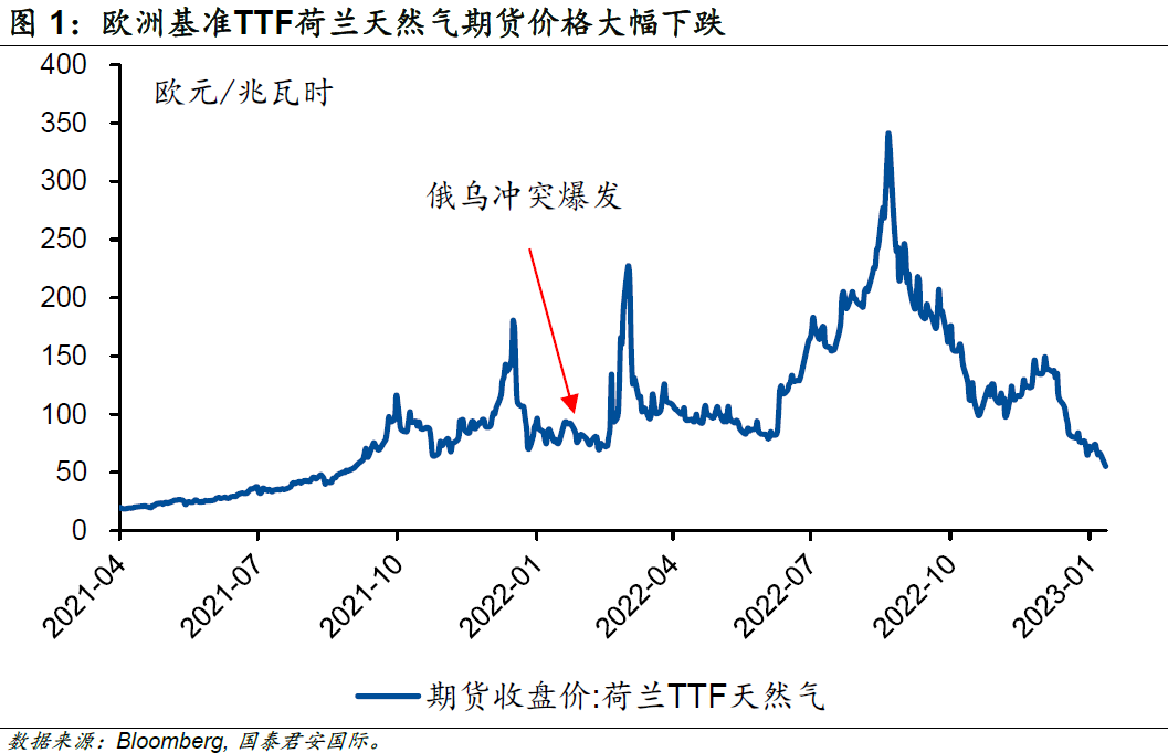 時至今日,俄烏沖突已經(jīng)持續(xù)將近一年的時間,原本歐洲主要的天然氣輸送管道“北溪”亦停運超過4個月。在全球新增天然氣供應(yīng)量有限及寒冬的預(yù)期下,歐洲基準(zhǔn)TTF荷蘭天然氣期貨價格一度飆升至接近340歐元/兆瓦時,為俄烏沖突爆發(fā)時的4倍左右。飆升的天然氣價格也成為了本輪全球范圍通脹走高的重要因素。