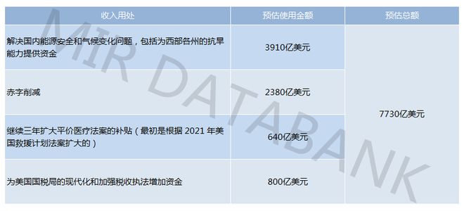 IRA法案的實施是政治家們的游戲,但透過政治博弈的波譎云詭,人們更關(guān)心的是法案本身到底在傳達什么信息。簡單來說,IRA法案旨在通過減少赤字、降低處方藥價格、投資國內(nèi)能源生產(chǎn)以及促進清潔能源產(chǎn)業(yè)來遏制通膨。以上的想法是偉大的,但是美國目前國家債務(wù)高筑,聯(lián)邦政府連年擴大赤字,美國的國家總債務(wù)限額屢屢被觸及,需要提高債務(wù)上限。這項宏大的新能源投資刺激法案的錢從哪來?又被具體分配到哪些領(lǐng)域? 這些問題由MIR睿工業(yè)通過對法案原文的解讀總結(jié)出下列圖表:
