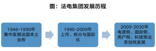 受到二戰(zhàn)后重建、石油危機的影響,法國政府希望在短時間內(nèi)快速建設(shè)法國電力工業(yè)。政府要求法電集團作為擔當此重任的主體。于是此階段法電重點發(fā)展本土的發(fā)電、輸電、配電業(yè)務,尤其是大量建設(shè)核電站。