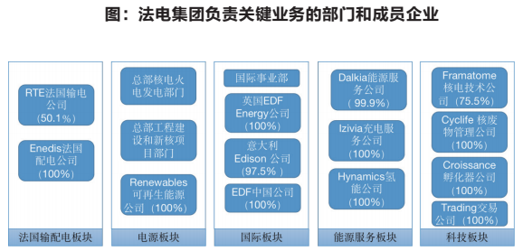 戰(zhàn)略決定組織變革,組織支撐戰(zhàn)略落地。目前法電負責關(guān)鍵業(yè)務的成員企業(yè)和部門可以歸納為五大板塊,如下圖所示。