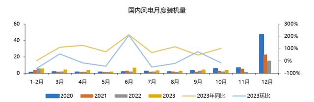 根據(jù)最新10月風(fēng)電裝機(jī)數(shù)據(jù),2023年1-10月,國內(nèi)新增風(fēng)電裝機(jī)37.31GW,同比增長76%,單10月新增裝機(jī)達(dá)到3.83GW,同比增長102%,環(huán)比下降16%??梢钥闯鰺o論單月裝機(jī)量還是累計規(guī)模都要遠(yuǎn)優(yōu)于去年,側(cè)面印證國內(nèi)風(fēng)電可能迎來了拐點(diǎn)。