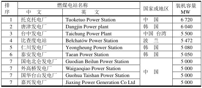 燃煤發(fā)電仍然霸占全球電力生產(chǎn)的主導(dǎo)地位,主要生產(chǎn)國是中國,居第一位是中國托克托電廠。中國臺灣地區(qū)的臺中發(fā)電廠降低到第三位。。