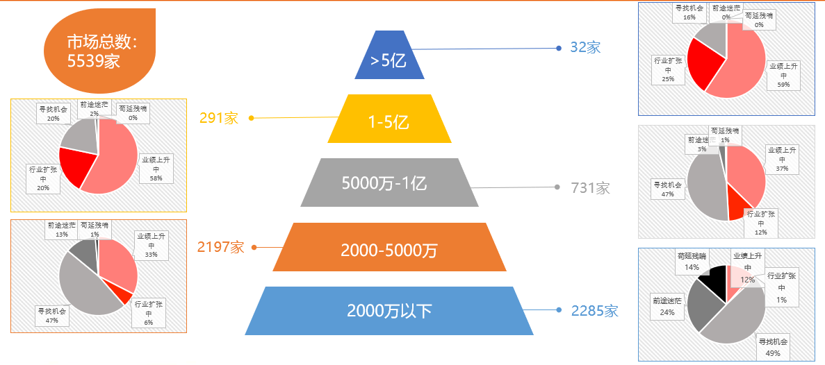 我們把盤柜廠的數(shù)據(jù)拿出來仔細(xì)分析了一下,行業(yè)里有5000多家經(jīng)營活躍的盤柜廠,2000萬以下的有2200家,2000萬到5000萬的又有2000多家,5000萬到一個(gè)億的有700多家,1億到5億的有不到300家,5億以上的只有32家,從數(shù)據(jù)可以看出來這是一個(gè)非常分散的行業(yè)。