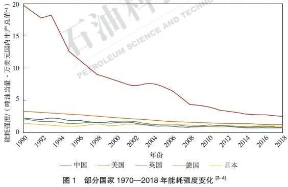 第一,能源效率全面提升。20世紀(jì)70年代,能效開始作為“隱藏的能源”得到普遍關(guān)注并逐漸影響各國能源政策制定。全球能耗強(qiáng)度(單位國內(nèi)生產(chǎn)總值能耗)持續(xù)下降,1970—2010年間,平均每年下降1.3%,2010年以來,平均每年下降2.1%,其中中國能耗強(qiáng)度降速最快、降幅最大(圖1)。國際能源署(IEA)提出“能效不僅是隱性的能源,更是第一能源”,其最早的11個(gè)成員國提升能效的投資已帶來顯著的節(jié)能效益。2010年,這11個(gè)成員國的節(jié)能量超過任何一種能源的消費(fèi)量,與石油和天然氣的消費(fèi)量總和相當(dāng)。