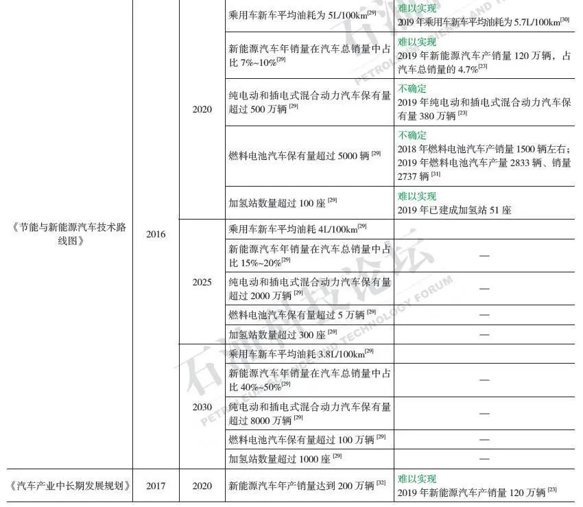 截至2020年,從中國主要能源政策目標(biāo)的完成情況可以看出:(1)中國作為世界能源生產(chǎn)、消費(fèi)第一大國,在能源消費(fèi)總量控制、非化石能源消費(fèi)比例以及單位國內(nèi)生產(chǎn)總值能耗和碳排放方面的目標(biāo)完成情況良好;(2)交通能效及新能源汽車產(chǎn)業(yè)指標(biāo)完成情況不理想。