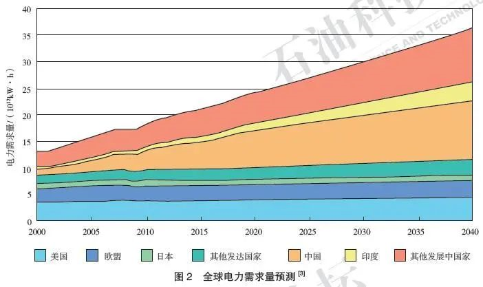 第二,現(xiàn)有能源利用系統(tǒng)變革,電力、氫能等二次能源消費(fèi)規(guī)模不斷擴(kuò)大。電力在終端能源消耗中所占的比例已從2000年的16%,增長到2018年的20%。國際可再生能源署(IRENA)認(rèn)為,全球電力需求量將持續(xù)高速增長,2050年,電力在終端能源消費(fèi)中所占比例將提高到49%左右。國際能源署認(rèn)為,全球電力需求的增長在發(fā)達(dá)國家和發(fā)展中國家將表現(xiàn)出兩條截然不同的路徑:在發(fā)達(dá)國家,電力需求增長將被數(shù)字化和電氣化技術(shù)進(jìn)步帶來的能效全面提升所抵消;在發(fā)展中國家,家庭收入的增長、工業(yè)規(guī)模的擴(kuò)大和服務(wù)業(yè)的發(fā)展正在有力地推動電力需求增長,按照既定政策,預(yù)計(jì)2019—2040年,發(fā)展中國家對全球電力需求增長的貢獻(xiàn)接近90%(圖2)。