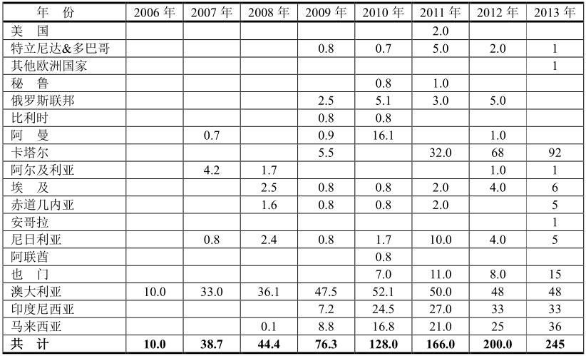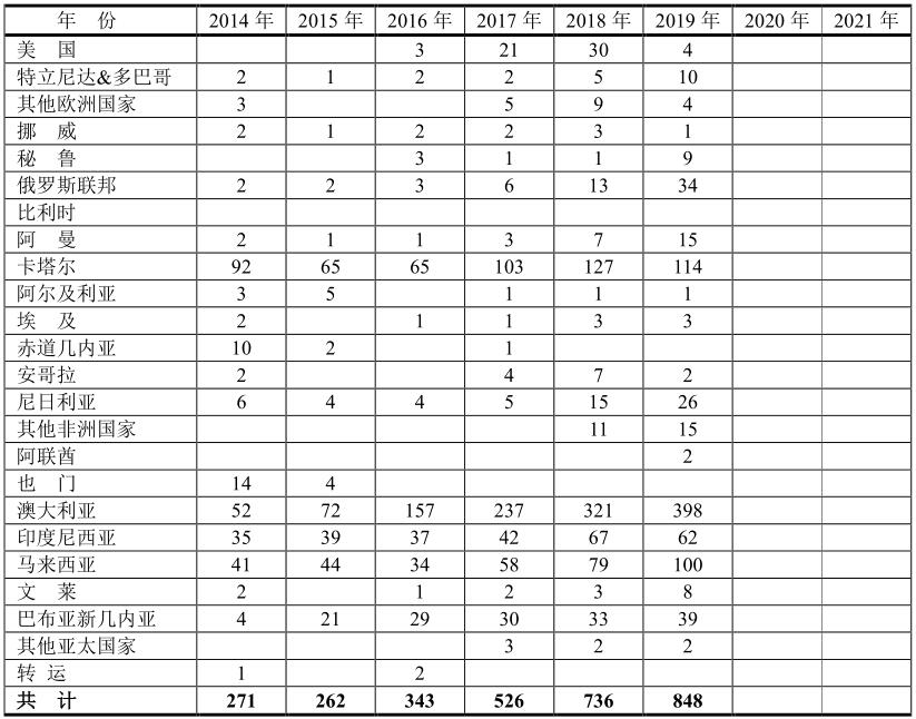 向中國(guó)銷售LNG約20個(gè)國(guó)家,但是主要的有卡塔爾、澳大利亞、印度尼西亞和馬來(lái)西亞等,這四個(gè)國(guó)家都是按照長(zhǎng)期合同執(zhí)行的,即按“照付不議”付款形式。其他的國(guó)家多數(shù)按照短期合同執(zhí)行。