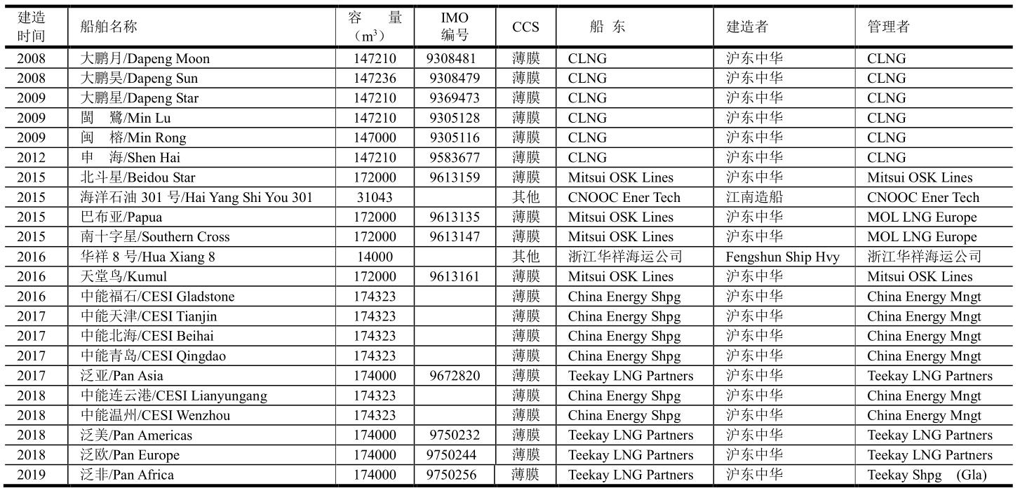 2019年全球交付44艘船舶,包括4艘FSRU和2艘小于50000m3的船舶。交付船舶的平均容量(4艘FSRU和2艘小于50000m3的船舶)為173827 m3。2019年中國交付的LNG運輸船舶只有一艘泛非號。