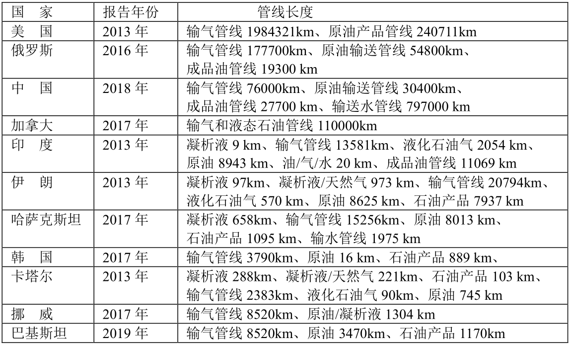 根據(jù)美國中央情報(bào)局(Central Intelligence Agency)《世界各國紀(jì)實(shí)年鑒》的統(tǒng)計(jì),世界上輸氣管道最多的國家是美國,幾乎占全球輸氣管線的69%,其次是富產(chǎn)天然氣的俄羅斯,居世界第二;中國體量大,居世界第三,輸氣管線長度為76000km,僅為美國的1/25。
