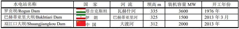 其次是伊朗巴赫蒂亞里河在建的巴赫蒂亞里大壩(Bakhtiari Dam),壩高325m,1500MW,工程造價(jià)20億美元,年發(fā)電量3TWh。排行第三是中國(guó)大渡河上的雙江口大壩(Shungjiangkou Dam),壩高312m。