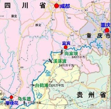 ▲ 在四川長(zhǎng)江-金沙江段修建了四座世界級(jí)的水電站:向家壩、溪洛渡、白鶴灘、烏東德。這四座水電站裝機(jī)總?cè)萘窟_(dá)46508MW,為三峽水電站裝機(jī)容量22500MW的46508/22500=2.07倍。其年發(fā)電量為185.05/101.6=1.82倍。白鶴灘(Baihetan)僅次于三峽水電站成為中國(guó)第二大水電站。