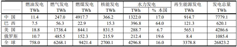 2020年水力發(fā)電前4個(gè)國(guó)家的電力結(jié)構(gòu)比較