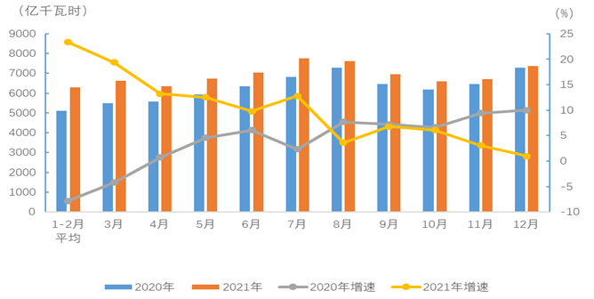 1-12月,全國全社會用電量83128億千瓦時①,同比增長10.3%,兩年平均增長7.1%。