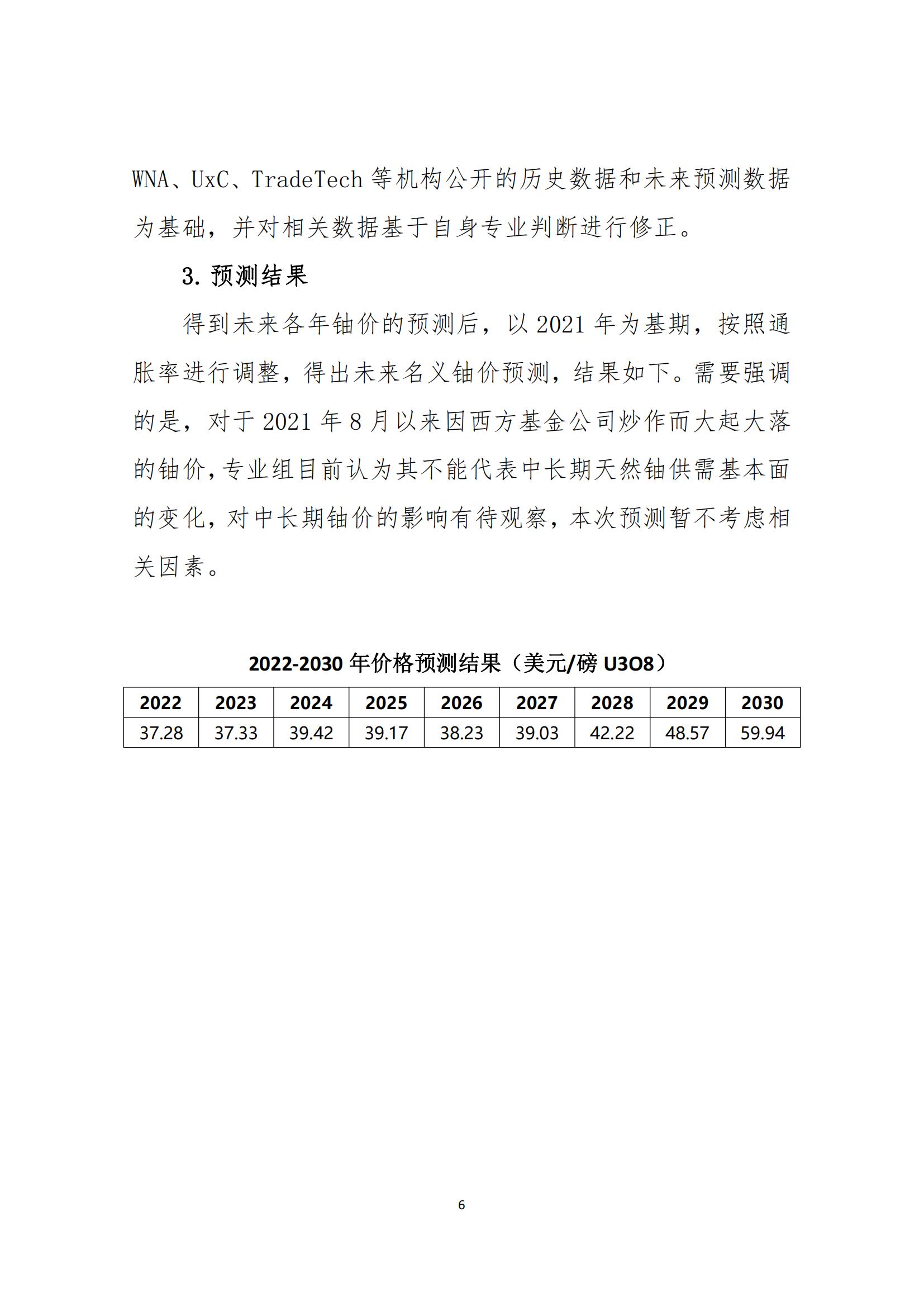 為分享、分析最新的天然鈾市場(chǎng)動(dòng)態(tài),預(yù)測(cè)天然鈾價(jià)格走勢(shì),為天然鈾采購、鈾項(xiàng)目收并購提供參考,中國電力發(fā)展促進(jìn)會(huì)核能分會(huì)成立了天然鈾價(jià)格預(yù)測(cè)專業(yè)組,基于自主研發(fā)的鈾價(jià)預(yù)測(cè)模型定期發(fā)布天然鈾價(jià)格預(yù)測(cè)報(bào)告,供核電行業(yè)和鈾資源行業(yè)同行參考和交流。