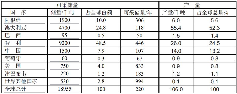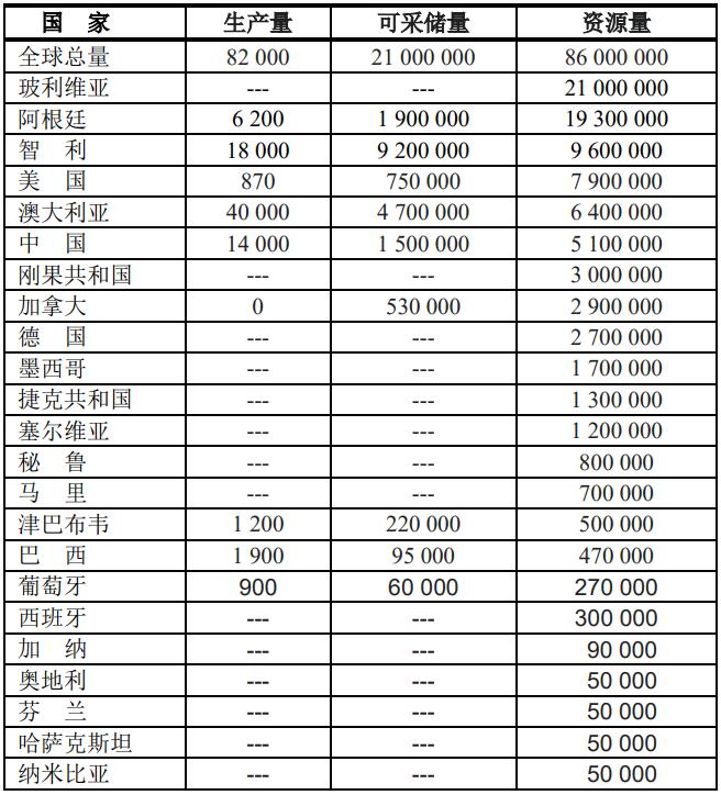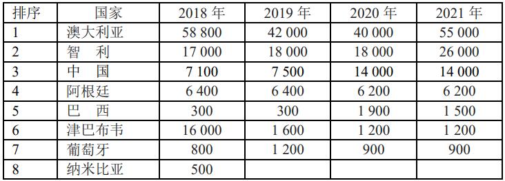 2021年底世界各國(guó)鋰的可采儲(chǔ)量和產(chǎn)量