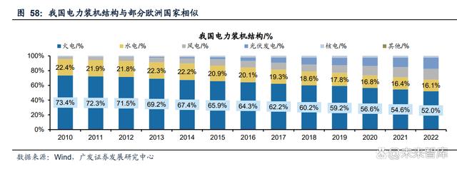 部分歐洲國(guó)家與我國(guó)電力結(jié)構(gòu)相似,能源轉(zhuǎn)型過(guò)程值得借鑒。從我國(guó)電力裝機(jī)結(jié)構(gòu)來(lái)看,過(guò)去我國(guó)以傳統(tǒng)電源火電、水電為主,2010年兩者裝機(jī)占比96%,風(fēng)光等可 再生能源逐漸成為發(fā)展重點(diǎn),水電、火電裝機(jī)占比下降,2022年火電裝機(jī)占比52%, 水電開(kāi)發(fā)已進(jìn)入后半程增量有限,風(fēng)光成為新增裝機(jī)主力,這與部分歐洲國(guó)家如德 國(guó)、波蘭頗為相似,2022年德國(guó)煤電發(fā)電量占比已經(jīng)降至31%,風(fēng)光發(fā)電量占比提 升至32%,其能源轉(zhuǎn)型走在我國(guó)之前。隨著我國(guó)提出雙碳目標(biāo),風(fēng)光占比提升成為 必然趨勢(shì),德國(guó)等歐洲國(guó)家能源轉(zhuǎn)型過(guò)程中的經(jīng)驗(yàn)對(duì)我國(guó)有重要的借鑒意義。