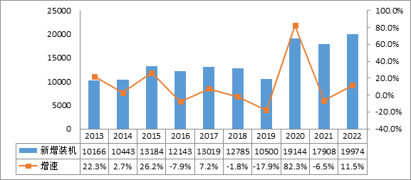 圖6 2013—2022年全國(guó)新增電力裝機(jī)及增速情況(單位:萬(wàn)千瓦)