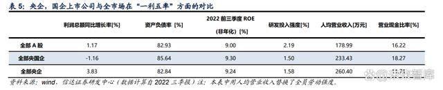 《方案》也要求深化解決部分中央企業(yè)內(nèi)部上市平臺定位不清、分布散亂、實力較弱的具體問題,并提出了相應(yīng)的量化要求。而《方案》的改革重點由全部國企轉(zhuǎn)變?yōu)檠肫蠊?,我?認(rèn)為這是基于央企控股上市公司的屬性。相對于國企上市公司,央企控股的背景意味著公司 的實際控制人為國資委,易于統(tǒng)一管理和直接考核,由此進行下一步改革的力度深度或?qū)⒏?強。在引入積極股東環(huán)節(jié),完善企業(yè)治理結(jié)構(gòu),進行企業(yè)制度創(chuàng)新等方面成效或更顯著。 近年來,為推動中央企業(yè)加快實現(xiàn)高質(zhì)量發(fā)展,國資委探索建立了中央企業(yè)經(jīng)營指標(biāo)體系。 2020 年,首次形成“兩利三率”指標(biāo)體系,包括凈利潤、利潤總額、營業(yè)收入利潤率、資產(chǎn)負(fù) 債率和研發(fā)經(jīng)費投入強度。2021 年,為引導(dǎo)中央企業(yè)提高生產(chǎn)效率,增加了全員勞動生產(chǎn) 率指標(biāo),完善為“兩利四率”。2022 年,針對“兩利四率”指標(biāo),進一步提出“兩增(利潤總額和 凈利潤增速高于國民經(jīng)濟增速)一控(控制好資產(chǎn)負(fù)債率)三提高(營業(yè)收入利潤率、全員 勞動生產(chǎn)率、研發(fā)經(jīng)費投入進一步提高)”的總體要求。2023 年的中央企業(yè)負(fù)責(zé)人會議上, 國資委在總結(jié)近幾年工作成效基礎(chǔ)上,對中央企業(yè)經(jīng)營指標(biāo)體系進行了優(yōu)化調(diào)整,將“兩利 四率”調(diào)整為“一利五率”。 “一增”即確保利潤總額增速高于全國 GDP 增速;“一穩(wěn)”即企 業(yè)資產(chǎn)負(fù)債率總體保持穩(wěn)定;“四提升”即凈資產(chǎn)收益率、研發(fā)經(jīng)費投入強度、全員勞動生產(chǎn)率、營業(yè)現(xiàn)金比率 4個指標(biāo)進一步提升。