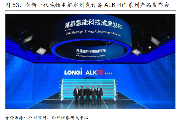 實施“綠電+綠氫”戰(zhàn)略,氫能業(yè)務蓬勃發(fā)展。光伏發(fā)電已成為全球最具經濟性的清潔能 源,“綠電+綠氫”將推動制氫成本 LCOH(單位制氫成本)的下降,同時有效克服可再生能 源間歇性、儲存性問題。隆基氫能提供的“綠電+綠氫”解決方案能全面覆蓋合成甲醇、合 成氨、鋼鐵冶煉、石油煉化等領域。隆基氫能作為領先企業(yè),在 2022 年 5 月成功入圍中 石化首個萬噸級綠氫示范項目,為其提供分布式光伏和光伏地面電站的解決方案,并提供 綠氫生產裝備以及制氫相關解決方案。萬華化學與隆基綠能于 2023 年達成戰(zhàn)略合作,實 現產業(yè)優(yōu)勢互補,助力“雙碳”目標實現。據證券之星披露,隆基綠能擬與可再生和清潔 能源開發(fā)商 Invenergy 合作,在美國俄亥俄州建設一處 5GW 光伏組件工廠。