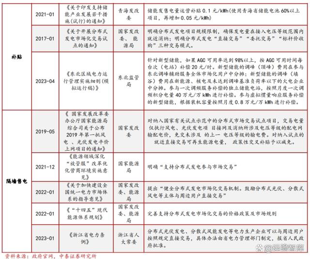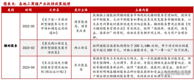 多形式扶持政策結(jié)合,鼓勵(lì)工商業(yè)儲(chǔ)能發(fā)展。為加快工商儲(chǔ)的滲透率,盡早實(shí)現(xiàn)商業(yè)化,國(guó)家和省市層 面均出臺(tái)了輔助服務(wù)、補(bǔ)貼、隔墻售電政策,為運(yùn)營(yíng)商創(chuàng)造多層次的盈利渠道。輔助服務(wù)方面,我國(guó)電 力輔助服務(wù)市場(chǎng)中交易品種包括調(diào)峰、調(diào)頻、無功調(diào)節(jié)、備用和黑啟動(dòng)等,近年來儲(chǔ)能和可調(diào)節(jié)負(fù)荷也 納入了提供輔助服務(wù)的市場(chǎng)主體之中;補(bǔ)貼方面,如今年 4 月東北監(jiān)管局連發(fā)兩文明確新型儲(chǔ)能各類補(bǔ) 償:針對(duì)新型儲(chǔ)能,如果 AGC 可用率達(dá)到 98%以上,按 AGC 可用時(shí)間每臺(tái)次(電站)補(bǔ)償 20 元/時(shí); 隔墻售電方面,浙江省于 2023 年 1 月 1 日起實(shí)施最新電力條例:分布式發(fā)電企業(yè)可以與周邊用戶按照 規(guī)定直接交易。