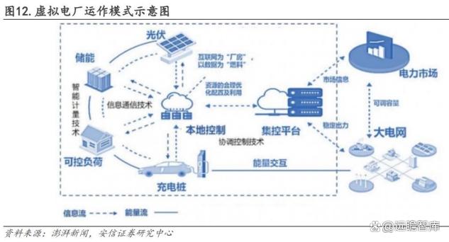 未來隨著電力市場成熟,工商業(yè)儲(chǔ)能也可以通過虛擬電廠以聚合的方式參與電力市場交易。虛擬電廠是應(yīng)用先進(jìn)的通訊和控制技術(shù),實(shí)現(xiàn)對大量散布的分布式資源的聚合調(diào)控,使這些分布式資源規(guī)?;⒕邆鋮⑴c電力系統(tǒng)運(yùn)行調(diào)度的資格和能力。“虛擬”的含義是這些資源并非真正的發(fā)電廠,而是對分布式資源的聚合,“電廠”的含義是能夠像真正的發(fā)電廠一樣為電力系統(tǒng)提供電能量和輔助服務(wù)。