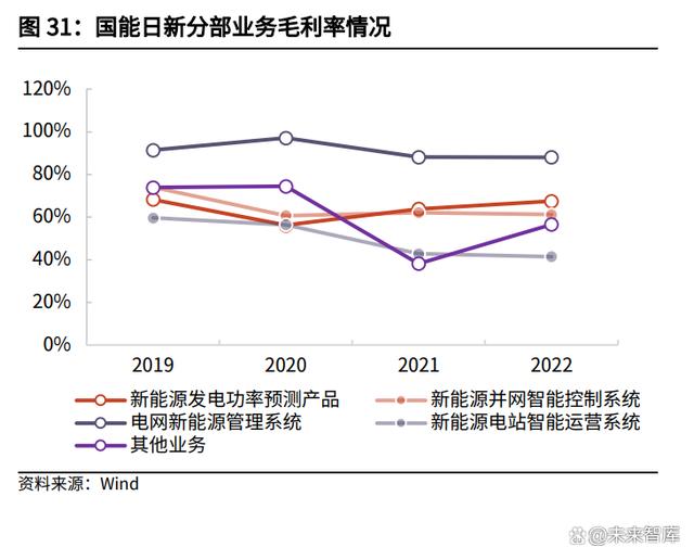 分部業(yè)務(wù)和毛利率微電網(wǎng)產(chǎn)品和系統(tǒng)業(yè)務(wù)持續(xù)發(fā)力,軟件產(chǎn)品逐步升級(jí)。公司于2020年變更分產(chǎn)品收入的統(tǒng)計(jì)口徑,其中電力監(jiān)控及變電站綜合監(jiān)控產(chǎn)品及系統(tǒng)、能效管理產(chǎn)品及系統(tǒng)、電量傳感器業(yè)務(wù)自2020年起均保持增長(zhǎng)。近年來企業(yè)微電網(wǎng)產(chǎn)品和系統(tǒng)業(yè)務(wù)(包括電力監(jiān)控及變電站綜合監(jiān)控產(chǎn)品及系統(tǒng)、能效管理產(chǎn)品及系統(tǒng)、消防及用電安全產(chǎn)品及系統(tǒng)、企業(yè)微電網(wǎng)-其他)占營(yíng)業(yè)收入的比重近90%,毛利率均維持在45%以上,整體經(jīng)營(yíng)和盈利能力較為穩(wěn)定。未來隨著公司系統(tǒng)產(chǎn)品的逐漸升級(jí),軟件業(yè)務(wù)占比有望逐步提高,進(jìn)而帶動(dòng)盈利能力提升。