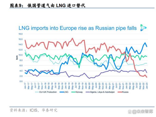 LNG 價(jià)格+運(yùn)輸成本或是歐洲氣價(jià)長期的錨,遠(yuǎn)期均衡價(jià)格或高于沖突前。俄烏沖突后, 俄管道氣(PNG)供給大幅下降,歐洲的天然氣供給高度依賴進(jìn)口液化氣(LNG)。從 LNG 與 PNG 價(jià)格本身特質(zhì)來看,除俄烏沖突期間俄羅斯 PNG 管道氣價(jià)格飆升階段外,美國 LNG 價(jià)格整體高于俄羅斯 PNG,LNG 價(jià)格+運(yùn)輸成本或是歐洲氣價(jià)長期的錨。遠(yuǎn)期歐洲天然氣 均衡價(jià)格預(yù)計(jì)仍比俄烏沖突前要高,給戶儲需求提供支撐。