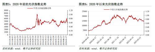 3、具體來看:1)風(fēng)電呈現(xiàn)周期性行情:三上漲與兩回調(diào)交錯,對應(yīng)行業(yè)擴(kuò)張與嚴(yán)監(jiān)管交替。風(fēng)電周期性行情與行業(yè)供需均衡情況相匹配,行業(yè)快速擴(kuò)張或增速放緩背后的原因在于政策引導(dǎo)或限制需求,復(fù)盤風(fēng)電發(fā)展和指數(shù)表現(xiàn),我們發(fā)現(xiàn)風(fēng)電行情周期大約在5年左右,每2-3年進(jìn)行一次峰谷切換。2)光伏“四上一下”行情:規(guī)劃、補(bǔ)貼和需求是驅(qū)動因素。單復(fù)盤光伏指數(shù)走勢,光伏1-2年出現(xiàn)一波行情,但結(jié)合行業(yè)監(jiān)管和企業(yè)出清來看,光伏產(chǎn)業(yè)發(fā)展和行情周期仍為5年左右,期間受補(bǔ)貼退坡等事件驅(qū)動,指數(shù)出現(xiàn)階段性行情。