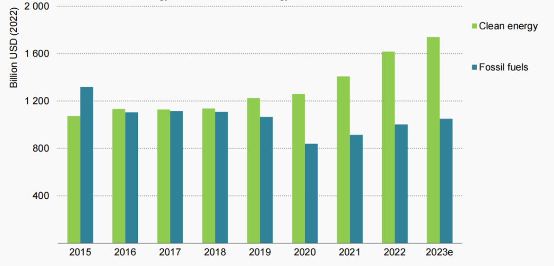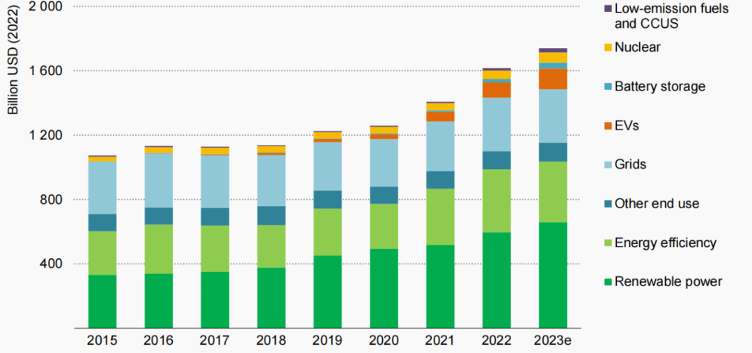 圖2 2015—2023年全球清潔能源投資情況 (來源:IEA)