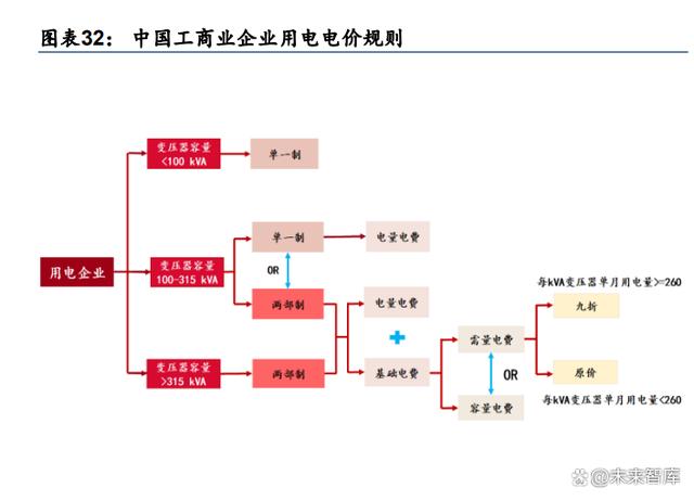 第三監(jiān)管周期電價改革鼓勵用戶配儲,優(yōu)化最大需量降低基本電費。2023 年 5 月 15 日, 國家發(fā)改委印發(fā)《國家發(fā)展改革委關于第三監(jiān)管周期省級電網(wǎng)輸配電價及有關事項的通知》, 輸配電價的改革利于引導電價機制合理化,倒逼工商業(yè)用戶進行需量管理:(1)明確單一 制和兩部制電價執(zhí)行范圍:①用電容量在 100 千伏安及以下的,執(zhí)行單一制電價;②100 千伏安至 315 千伏安之間的,可選擇執(zhí)行單一制或兩部制電價;③315 千伏安及以上的, 執(zhí)行兩部制電價,現(xiàn)執(zhí)行單一制電價的用戶可選擇執(zhí)行單一制電價或兩部制電價。(2)建 立負荷率激勵約束機制:選擇執(zhí)行需量電價計費方式的兩部制用戶,每月每千伏安用電量 達到 260 千瓦時及以上的,當月需量電價按核定標準 90%執(zhí)行。需量電價的優(yōu)惠有助于引 導用戶根據(jù)自身負荷合理報裝容量,提升變壓器利用率。