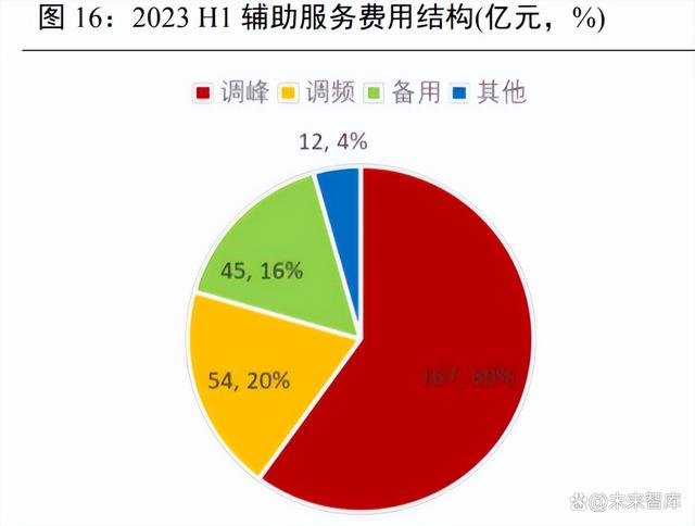 火電輔助服務收費仍有較大增長空間,與容量電費一起抬高火電機組收入底部空間。2023年上半年,我國電力輔助服務收費合計 278 億元,其中:調峰補償167 億元,占比60.0%;調頻補償 54 億元,占比 19.4%;備用補償 45 億元,占比 16.2%,其他輔助服務收費12億元,占比 4.4%。火電機組仍是輔助服務的主要提供方,2023 年上半年火電企業(yè)獲得輔助服務補償254 億元,占比 91.4%。即,我國 2023 年輔助服務費年化 556 億元,其中火電獲得508億元。