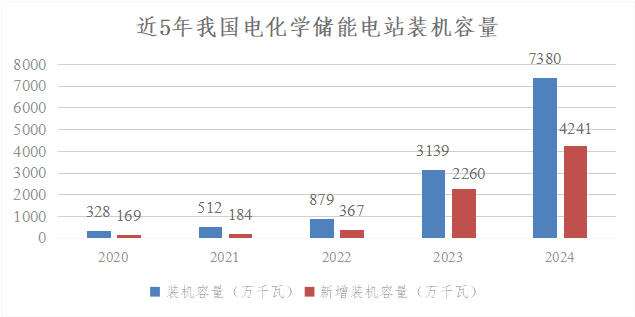 2024年,我國新型儲能延伸了2023年強勁發(fā)展的態(tài)勢,又一次實現(xiàn)了翻番。截至當年底,全國新型儲能累計裝機規(guī)模達7376萬千瓦/1.68億千瓦時,較上年底增長超過130%。全年新增新型儲能投運裝機規(guī)模 4370千瓦/1.098億千瓦時,同比增長103%/136%。新型儲能累計裝機規(guī)模首超抽水蓄能,占比57.6%; 而新型儲能中的鋰離子電池儲能成為市場占比最高的儲能技術(shù),占儲能總裝機的55.2%,其他依次為熔融鹽儲熱(占比0.8%)、壓縮空氣儲能(占比0.6%)、液流電池(占比0.4%)。尤其要指出的是,2024年是我國新型儲能取得突破的一年,全球首座300MW壓氣儲能示范工程“能儲一號”全容量并網(wǎng),嚴寒地區(qū)首套百兆瓦級全釩液流電池共享儲能電站正式投產(chǎn),首座獨立飛輪儲能電站成功并網(wǎng)等,從“一花獨秀”到“多點開花”。