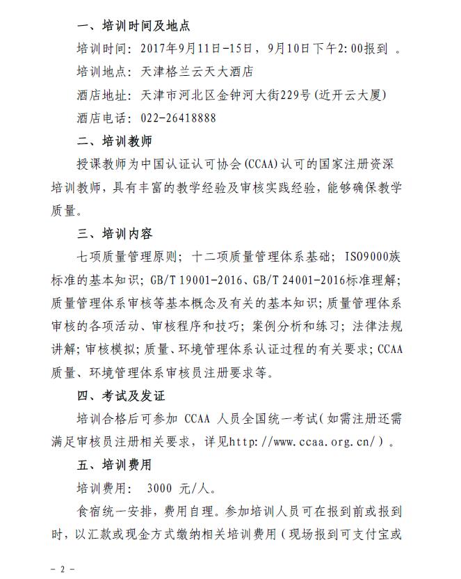 關(guān)于舉辦“質(zhì)量、環(huán)境管理體系國(guó)家注冊(cè)審核員培訓(xùn)班”的通知