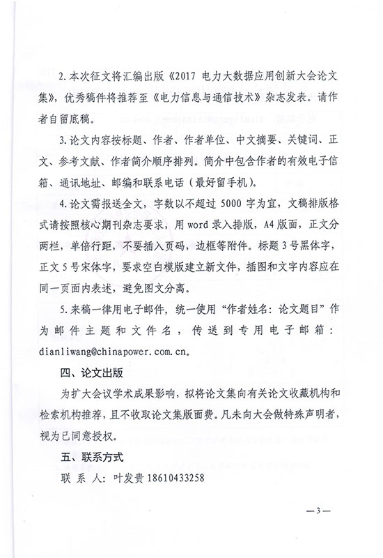 關(guān)于“2017電力大數(shù)據(jù)應(yīng)用創(chuàng)新大會”的征文通知