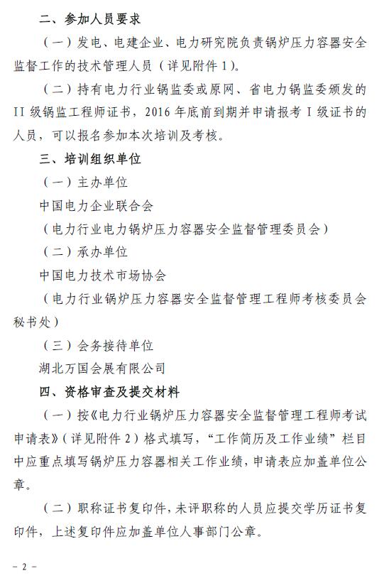 鍋監(jiān)考【2016】2號,關(guān)于舉辦2016年電力行業(yè)鍋爐壓力容器安全監(jiān)督管理工程師培訓(xùn)班的通知.pdf